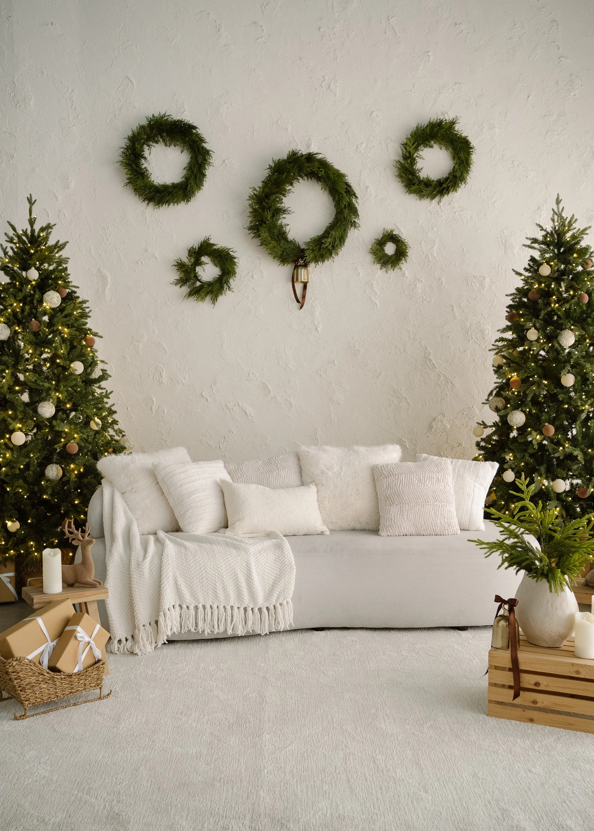 From the soft, curved sofa to the textured walls and glowing trees, The Terra was designed to photograph effortlessly - perfect for families, brands, and creatives who love a minimal holiday look with timeless charm.